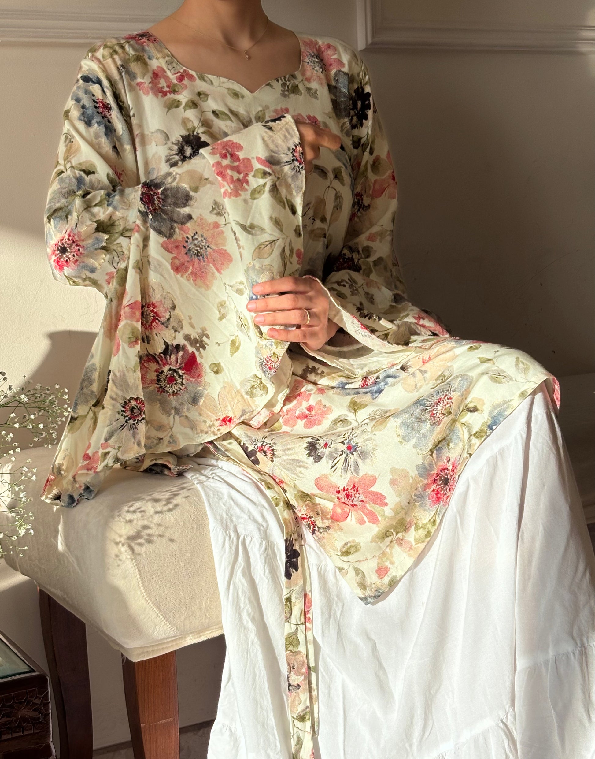 Crafted from soft, breathable rayon, this kurti combines effortless comfort with understated elegance. It features long adjustable belts that can be tied in different ways — accentuating the waist for a defined silhouette or left loose for a relaxed, flowy fit. Designed for everyday wear yet chic enough for outings, it’s a versatile piece that transitions seamlessly from day to evening.